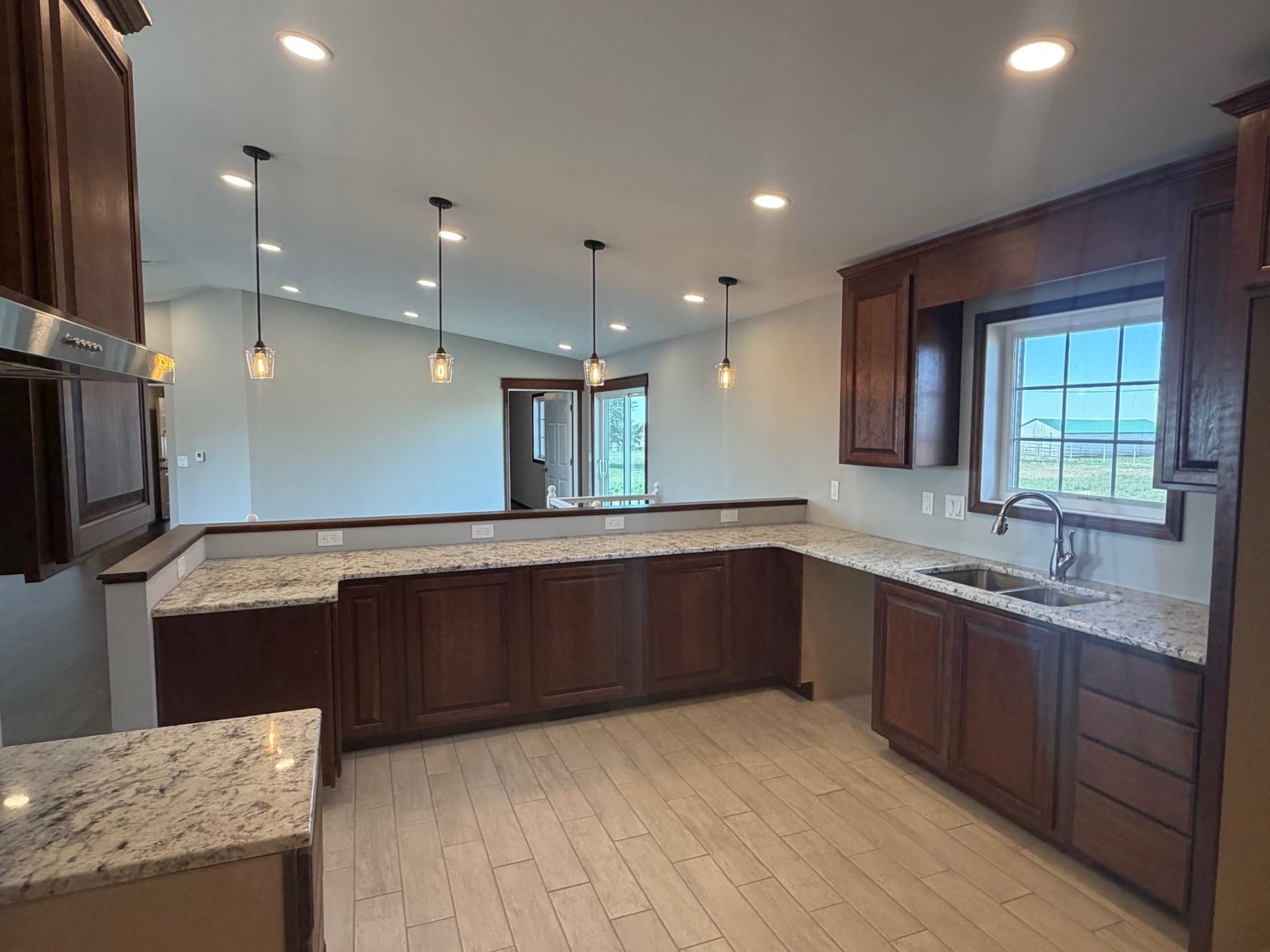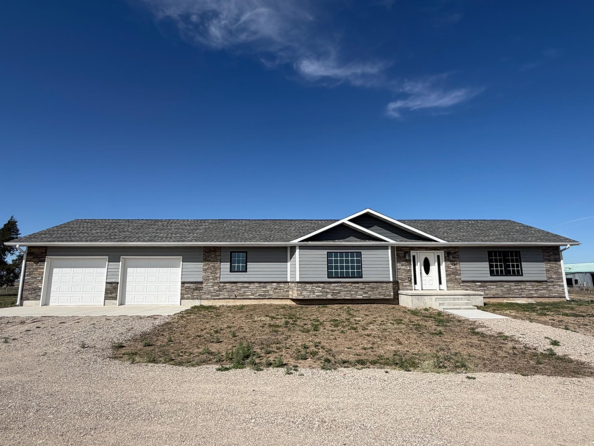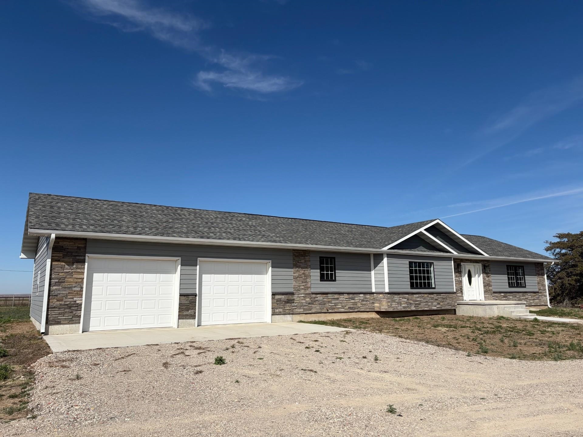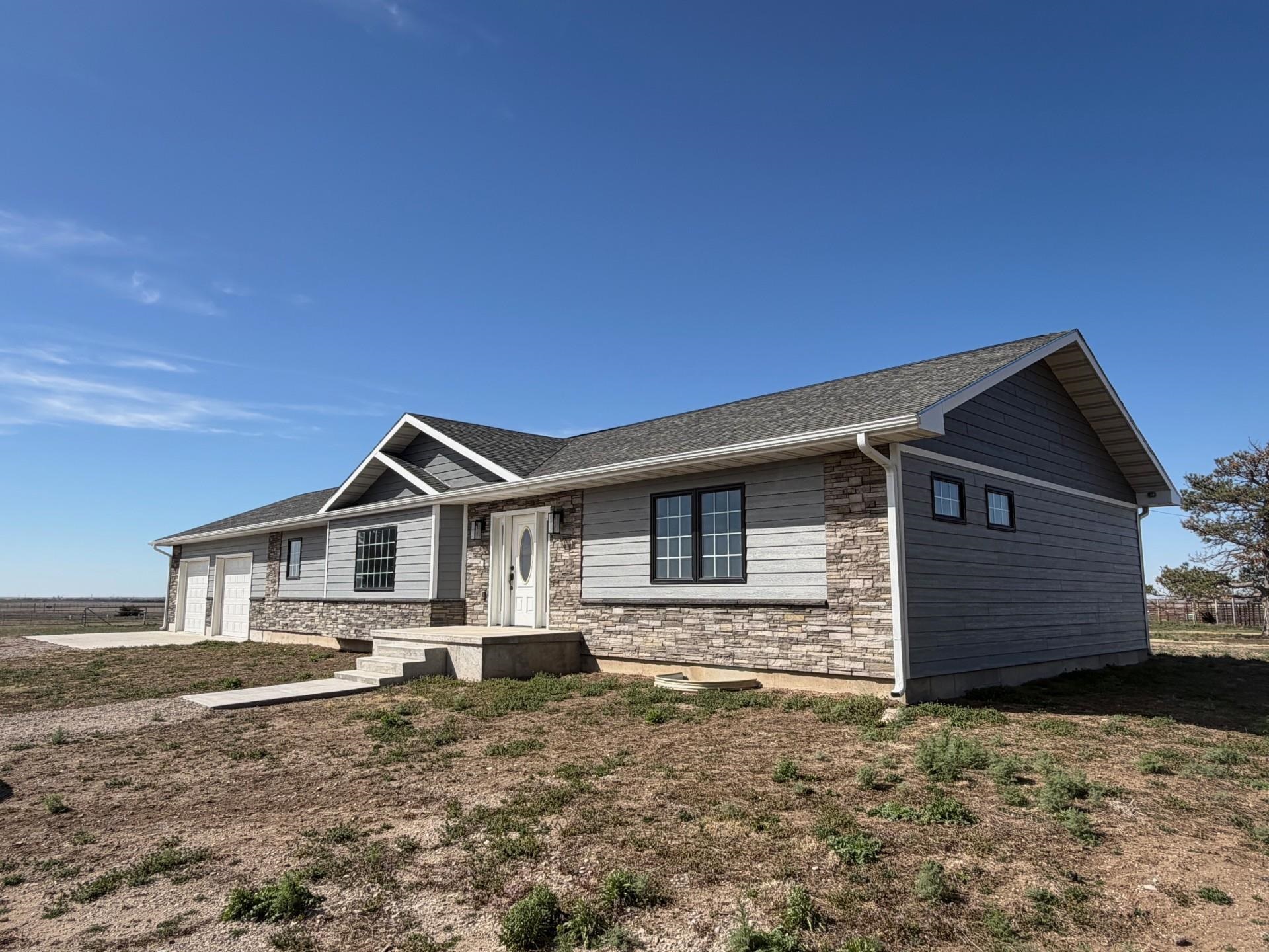Beautiful ranch style home built in 2023 (never lived in) located just outside Hays, KS, offering peaceful country living with the convenience of blacktop access. Situated on approximately 3± acres with additional negotiable acreage, this property is outside city limits and showcases stunning Kansas sunrise and sunset views. This thoughtfully designed 3~bedroom, 2~bathroom home features an open and functional layout with quality finishes throughout. The kitchen boasts Onyx countertops, ample cabinetry, and a walk~in pantry, making it ideal for both everyday living and entertaining. The spacious primary suite includes a luxurious Onyx walk in shower with rainfall shower head, double Onyx vanities, and a large walk~in closet. The home also offers a full unfinished basement, providing excellent storage or expansion potential. Plumbing for an additional bathroom has already been installed, allowing for easy future customization. Additional features include a two~car attached garage, rural water, and durable exterior finishes with stone and Hardie board siding. The roof is completed with Class 3 impact rated Tamko Titan shingles, offering added durability and peace of mind. Call Dale Haselhorst today at 785~432~1444 for a showing!!!