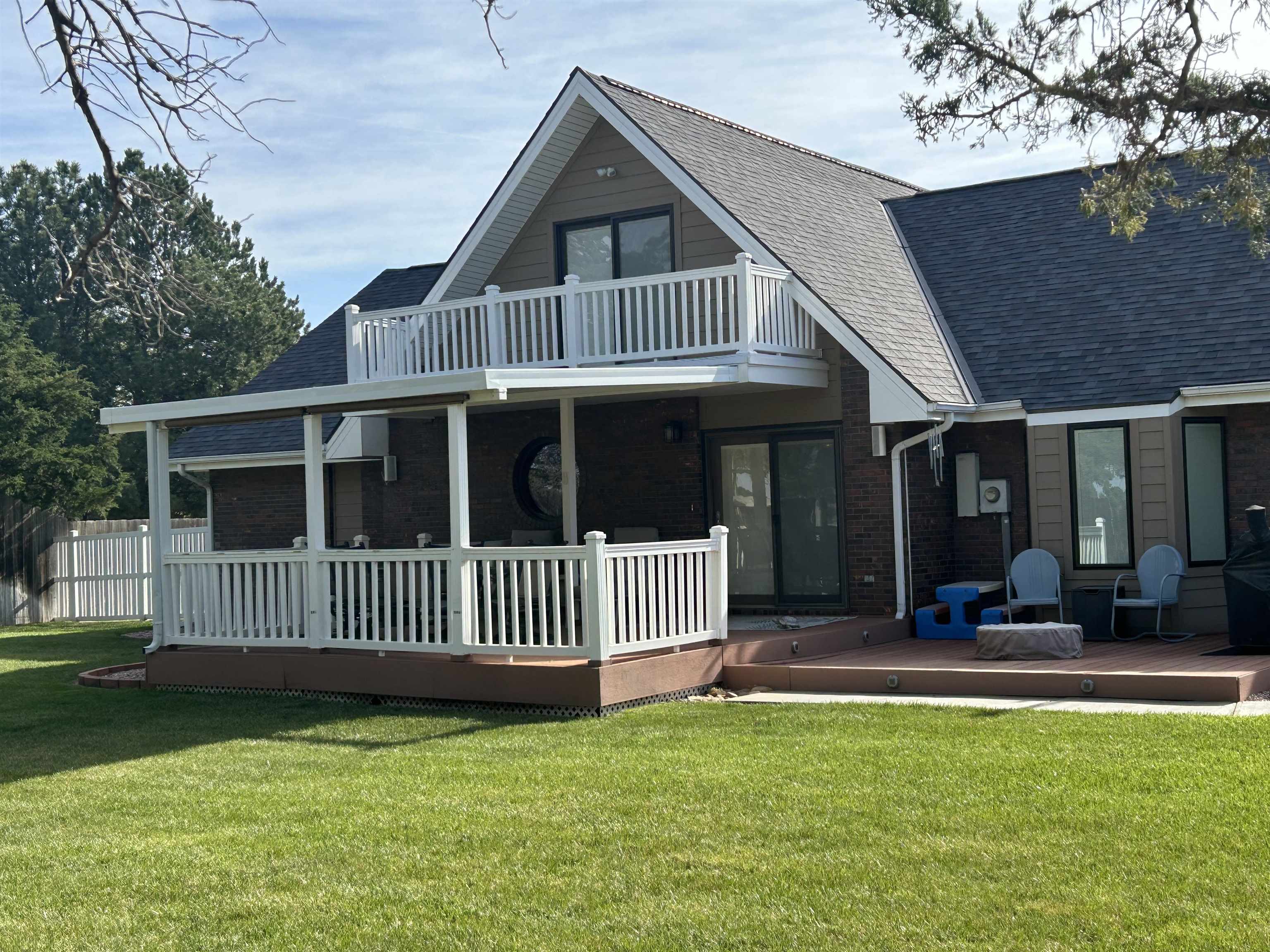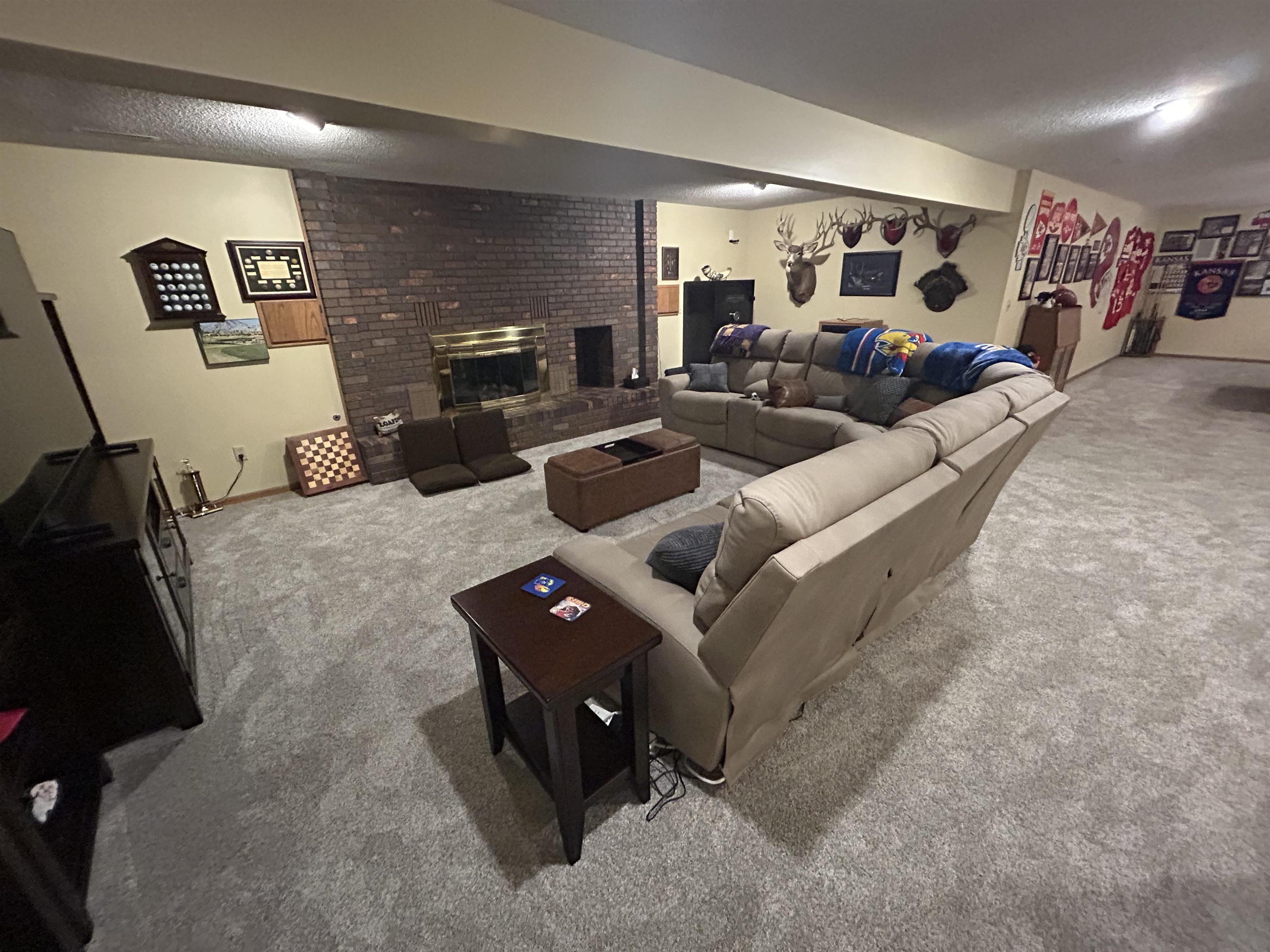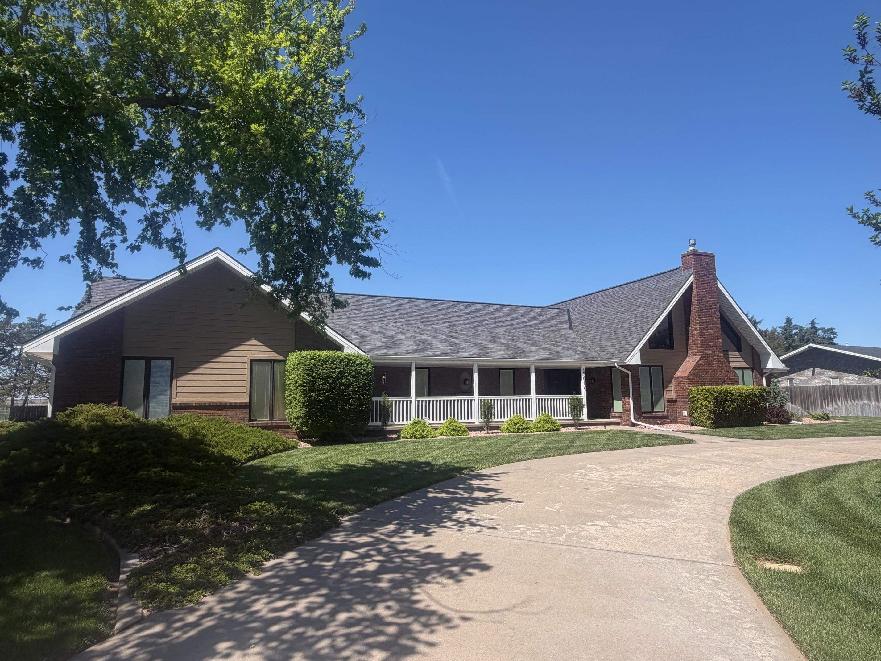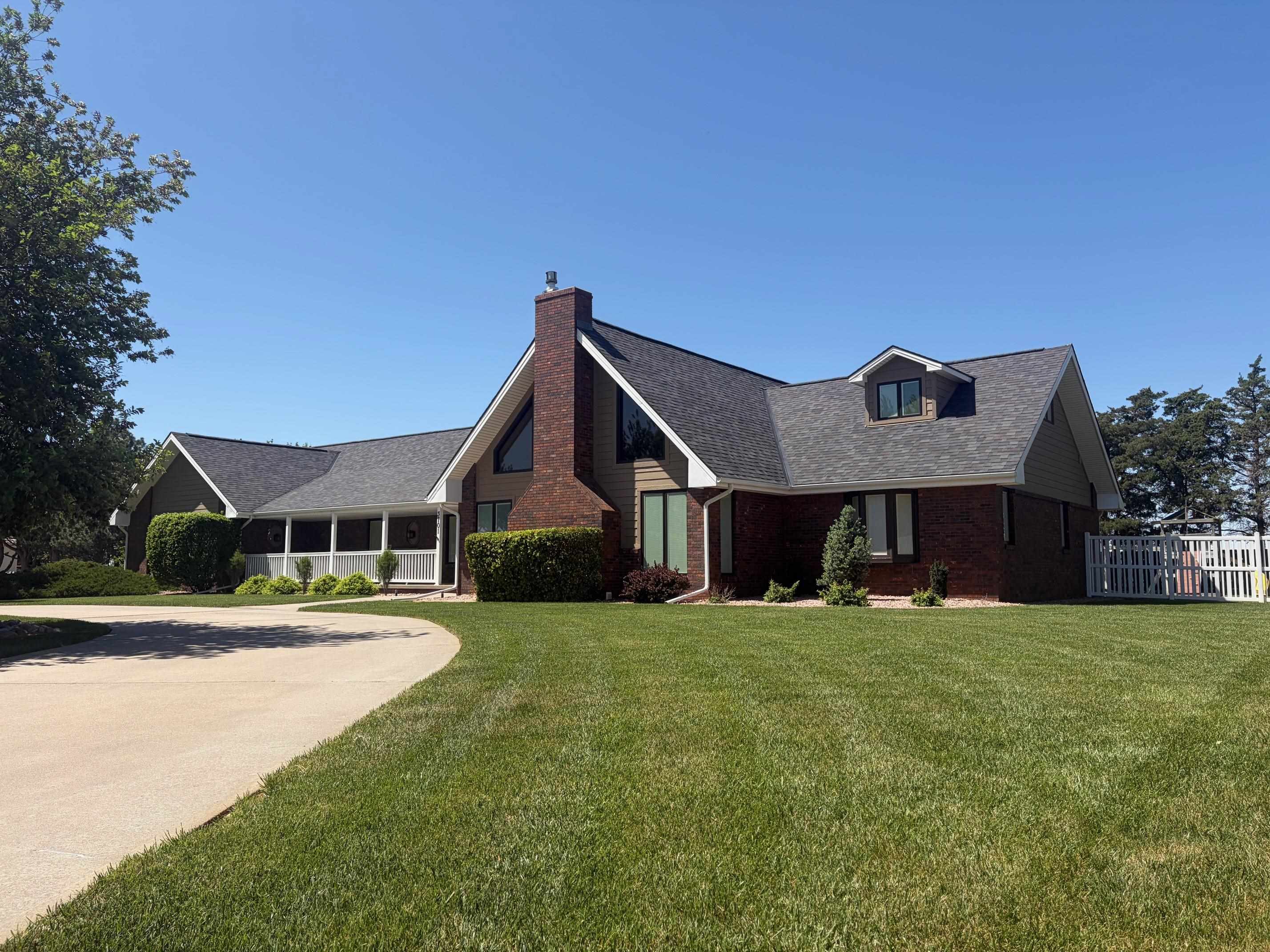 This incredible executive home is located across the street from the #5 green of Smoky Hill Country Club. The huge .6-acre lot is immaculately manicured with mature landscaping and a sprinkler system that is connected to a water well. An oversized 3-car garage, circle drive and partial street adjacent to the lot provide plenty of parking for family gatherings. The large inviting covered front porch offers quiet outdoor seating and unlimited holiday decorating possibilities. As you enter this spectacular home, a 2-story living room with abundant natural light and brick fireplace immediately grab your attention. The hardwood flooring leads you to a massive kitchen\breakfast room with custom cabinets, granite counters, large island, and stainless-steel appliances. The adjacent formal dining room has a bay window and ceiling design. The utility room measures a whopping 16'3" x 11'4" and has a laundry sink, plenty of storage, and a fold down ironing board. The 2nd and 3rd bedrooms are spacious and are directly across the hall from the most inviting main bath you can imagine with a whirlpool tub, double sinks, and a separate shower. The master bedroom is huge with a bay window, ceiling design, private en suite and walk in closet. The upstairs loft currently is configured as a dream office overlooking the 2-story living room with its own private 5 x 18 balcony, and a 6th non-conforming bedroom\storage\playroom. Downstairs is FUN TIME!! Two rec areas large enough for a pool table, air hockey, huge pit group and a brick fireplace offer hours of entertainment. The basement bedrooms are very large and there is also a large bathroom that has a built-in vanity. The quality construction of this brick\LP sided home include 50 yr impact resistant Malarkey shingles, energy efficient windows, 50-gallon gas water heater with wiring already installed if you want to convert to electric. All of these features contribute to incredible average Midwest Energy bills averaging only $219 for a home that is over 5200 sq ft!!! The backyard area features a huge 2-level composite deck with a covered area of about 300 sq ft. There is SO much room in the backyard to enjoy every day!! Contact John Holub @ 785-623-8004 or johnh@eliterealtyks.com to tour this home and make it yours!!!
