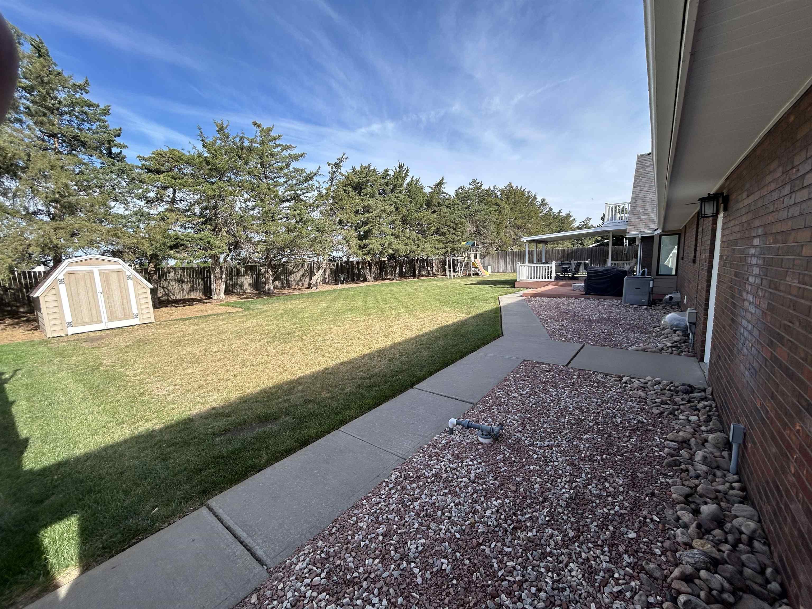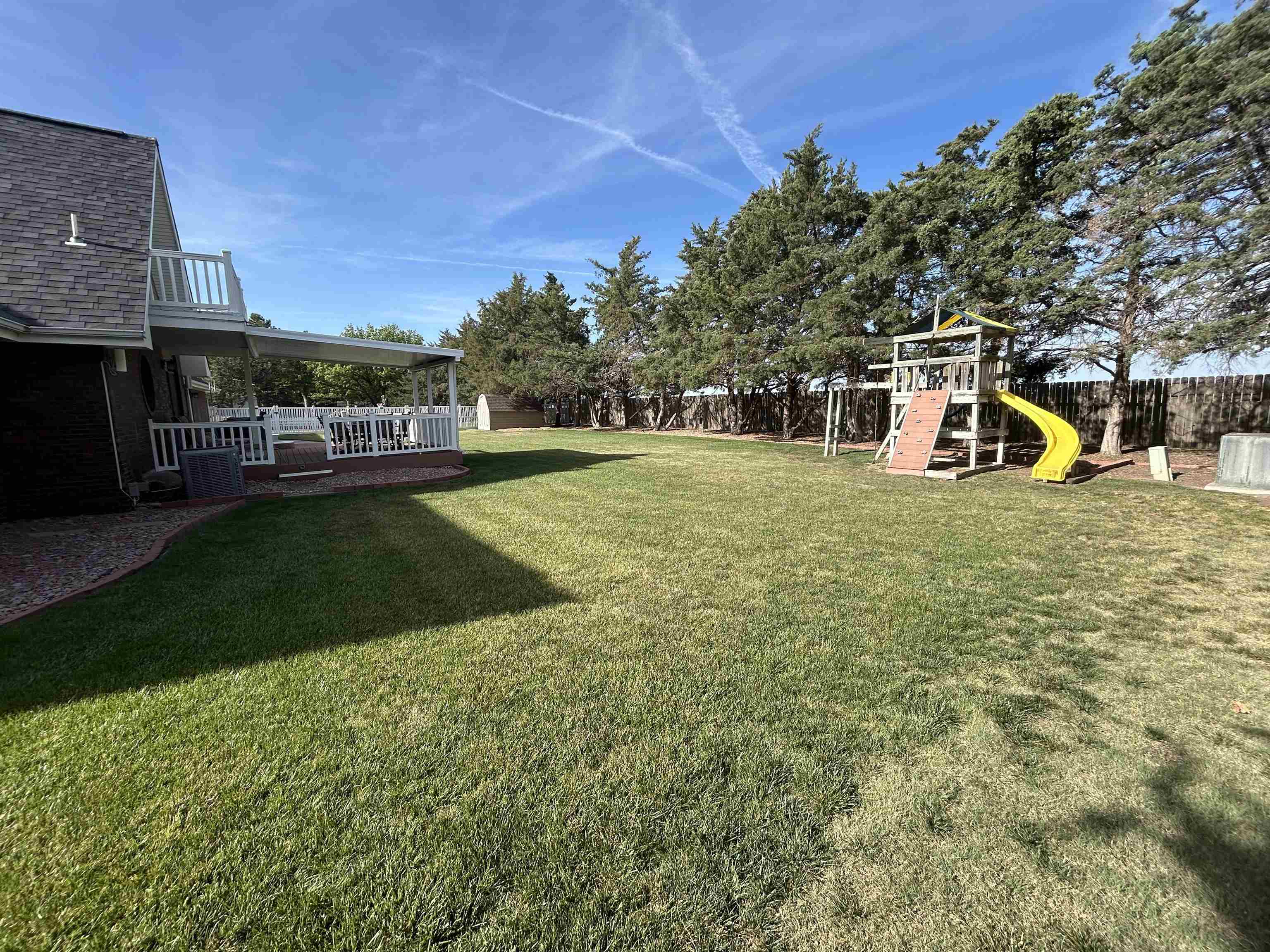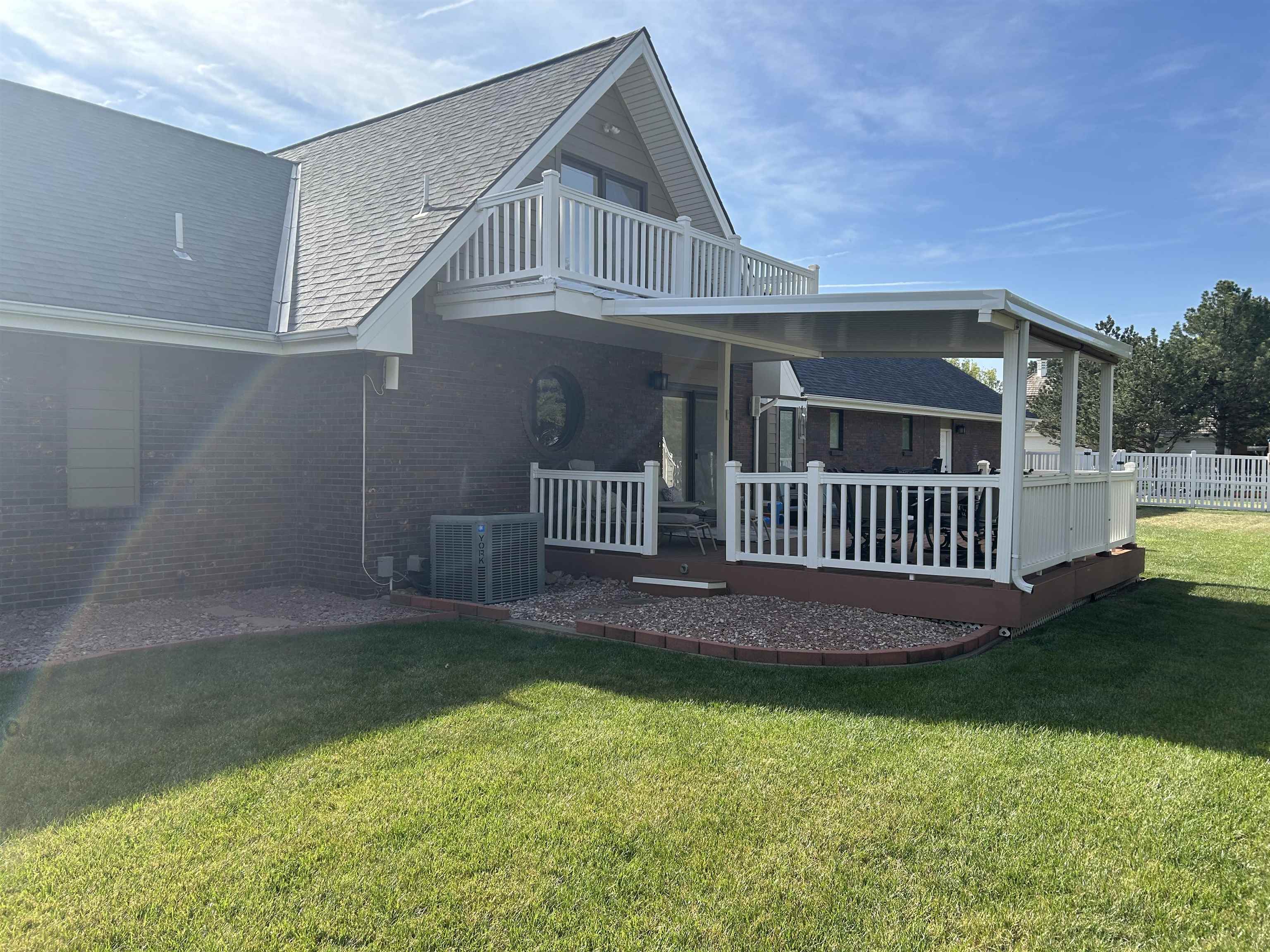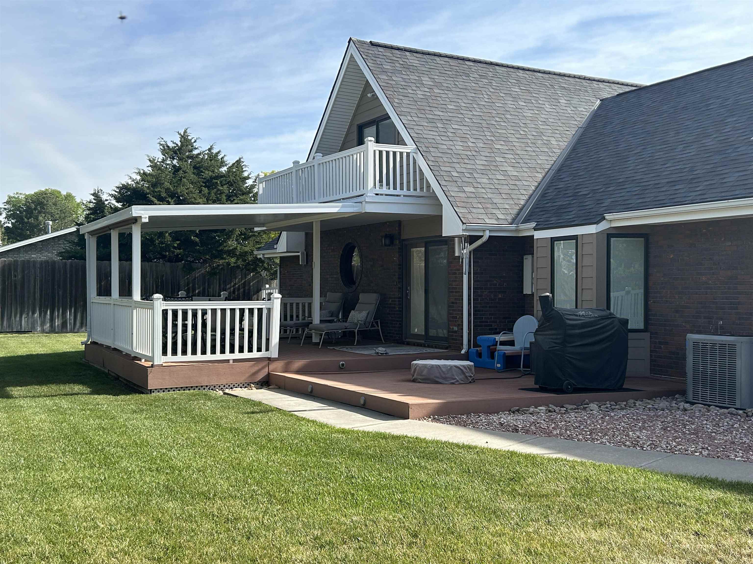 This incredible executive home is located across the street from the #5 green of Smoky Hill Country Club. The huge .6-acre lot is immaculately manicured with mature landscaping and a sprinkler system that is connected to a water well. An oversized 3-car garage, circle drive and partial street adjacent to the lot provide plenty of parking for family gatherings. The large inviting covered front porch offers quiet outdoor seating and unlimited holiday decorating possibilities. As you enter this spectacular home, a 2-story living room with abundant natural light and brick fireplace immediately grab your attention. The hardwood flooring leads you to a massive kitchen\breakfast room with custom cabinets, granite counters, large island, and stainless-steel appliances. The adjacent formal dining room has a bay window and ceiling design. The utility room measures a whopping 16'3" x 11'4" and has a laundry sink, plenty of storage, and a fold down ironing board. The 2nd and 3rd bedrooms are spacious and are directly across the hall from the most inviting main bath you can imagine with a whirlpool tub, double sinks, and a separate shower. The master bedroom is huge with a bay window, ceiling design, private en suite and walk in closet. The upstairs loft currently is configured as a dream office overlooking the 2-story living room with its own private 5 x 18 balcony, and a 6th non-conforming bedroom\storage\playroom. Downstairs is FUN TIME!! Two rec areas large enough for a pool table, air hockey, huge pit group and a brick fireplace offer hours of entertainment. The basement bedrooms are very large and there is also a large bathroom that has a built-in vanity. The quality construction of this brick\LP sided home include 50 yr impact resistant Malarkey shingles, energy efficient windows, 50-gallon gas water heater with wiring already installed if you want to convert to electric. All of these features contribute to incredible average Midwest Energy bills averaging only $219 for a home that is over 5200 sq ft!!! The backyard area features a huge 2-level composite deck with a covered area of about 300 sq ft. There is SO much room in the backyard to enjoy every day!! Contact John Holub @ 785-623-8004 or johnh@eliterealtyks.com to tour this home and make it yours!!!