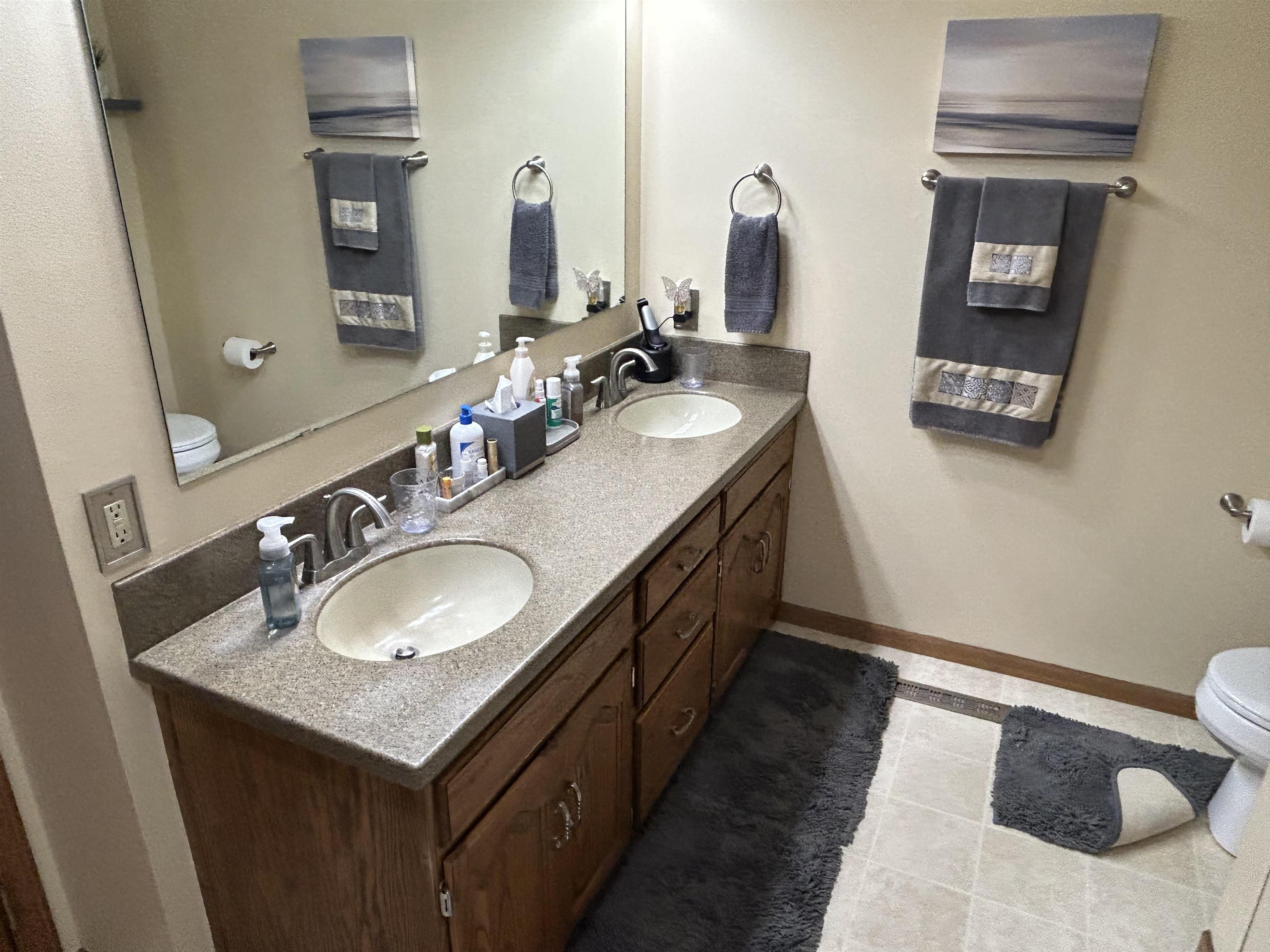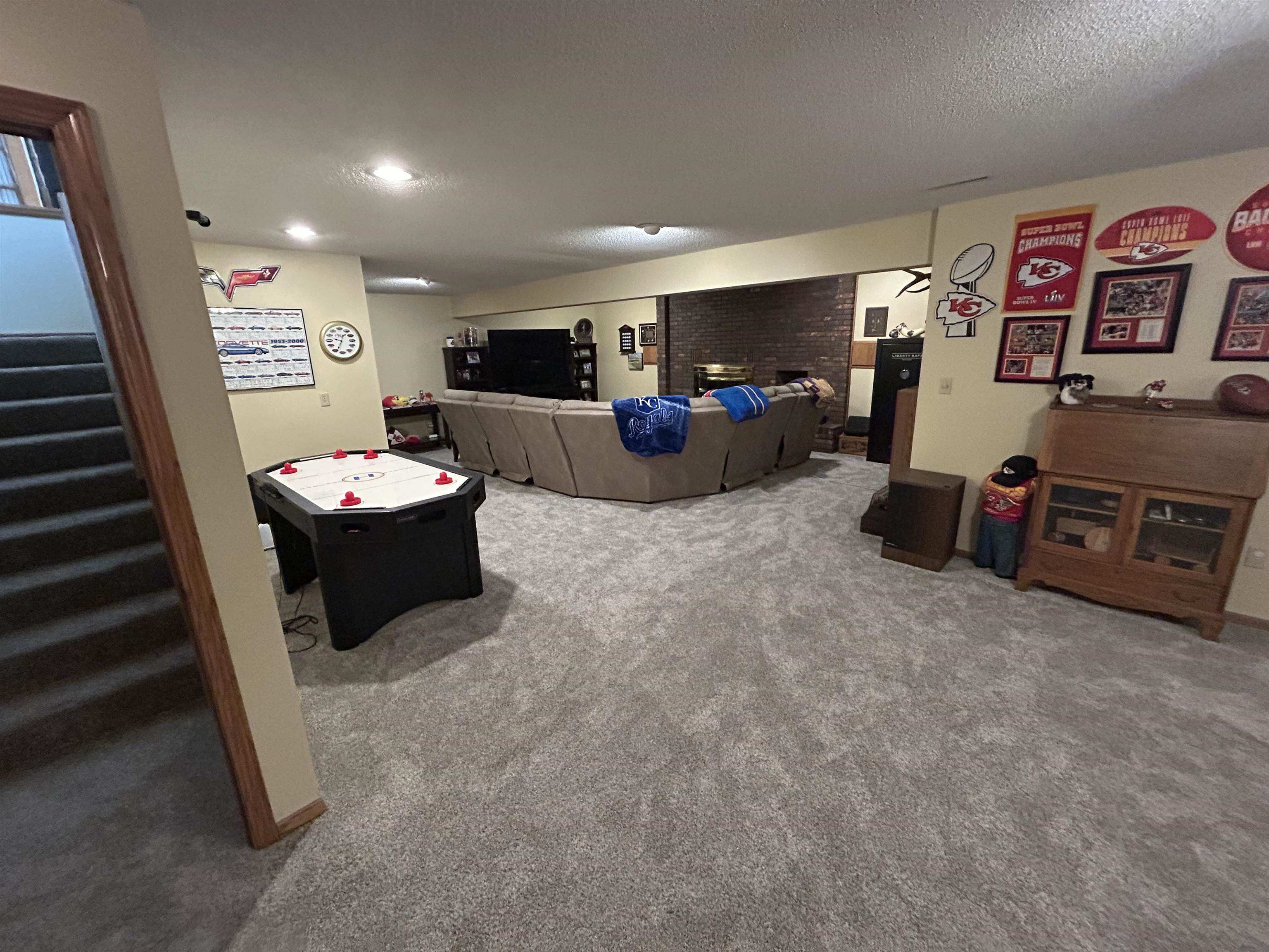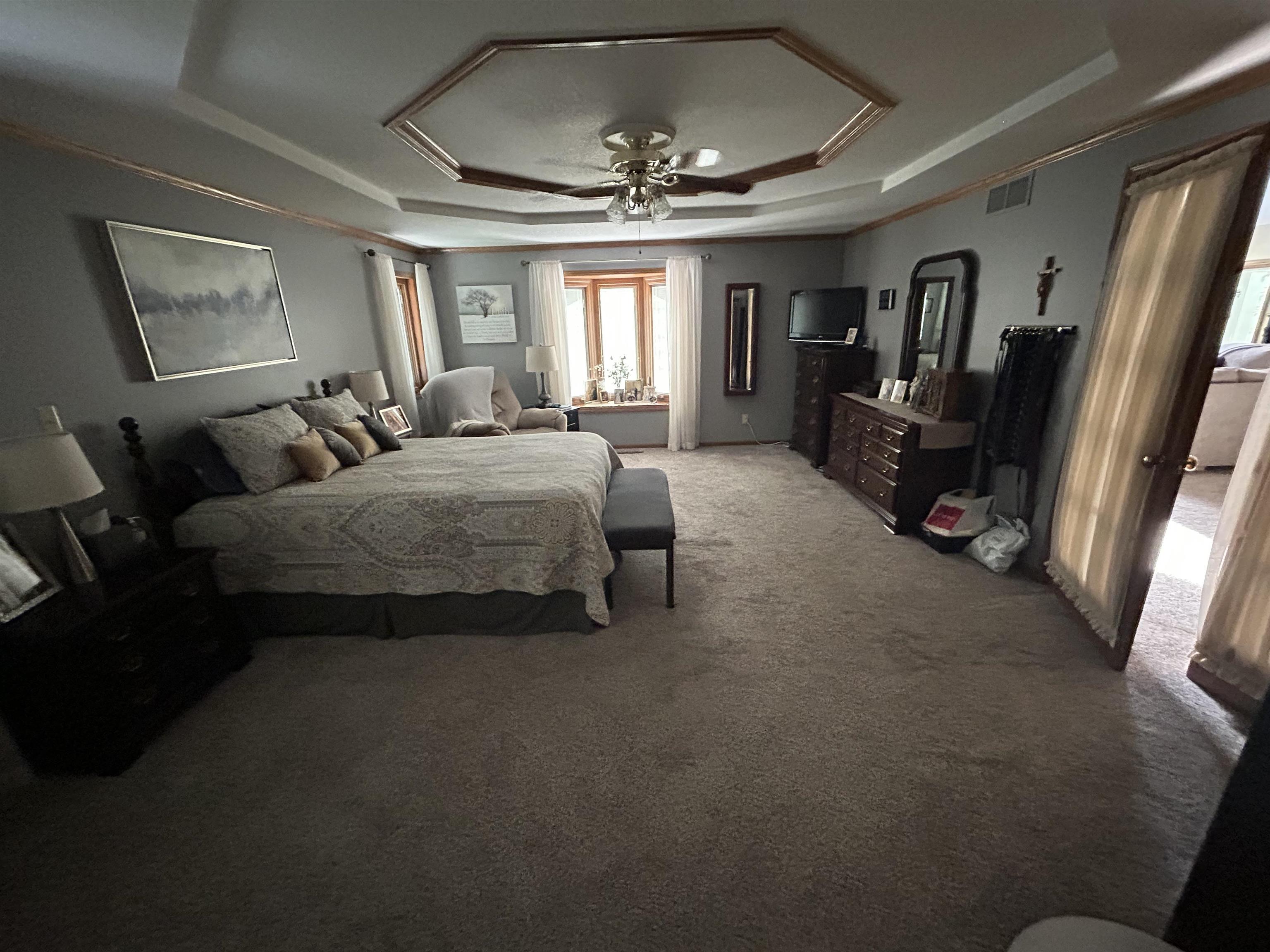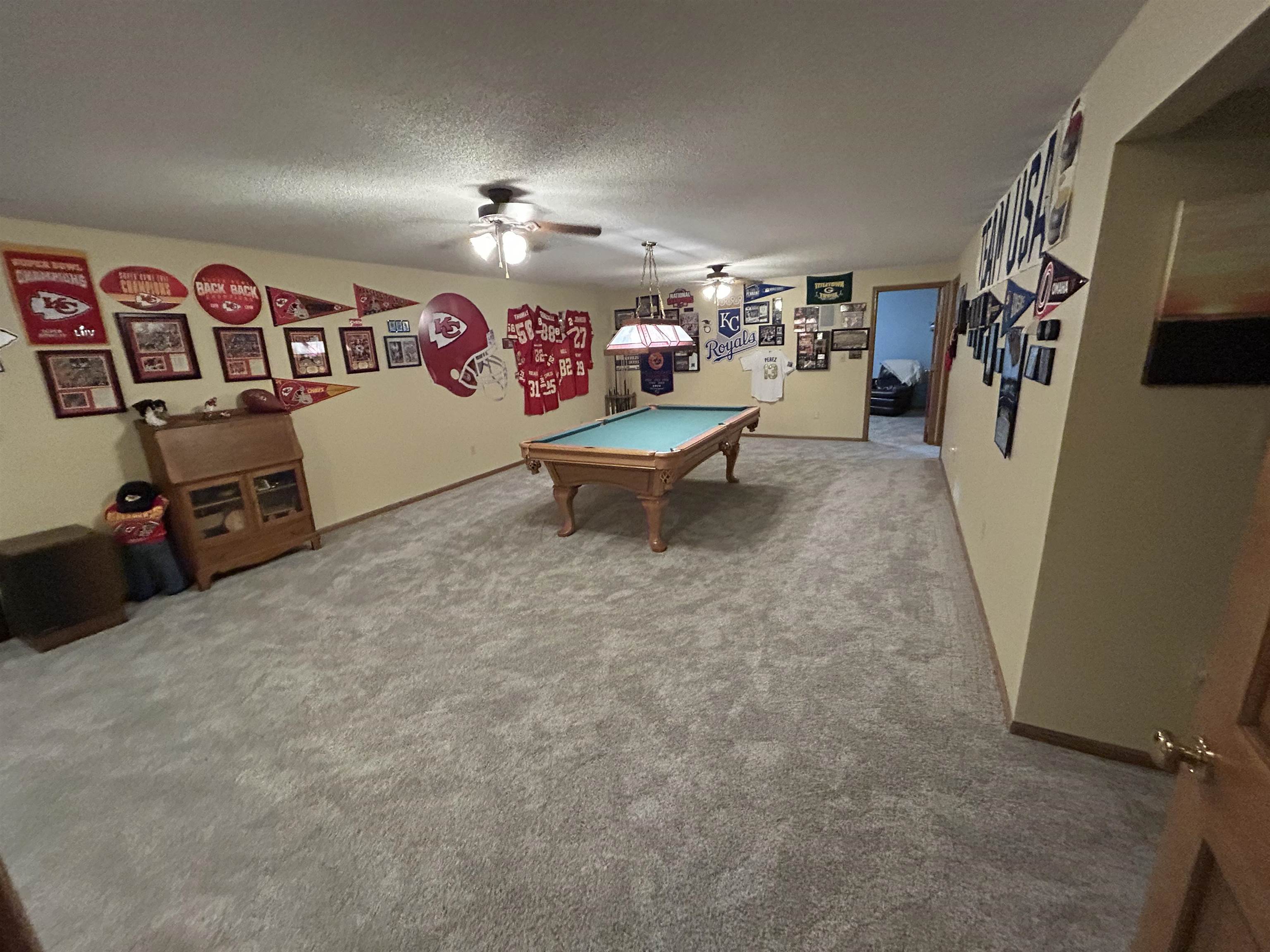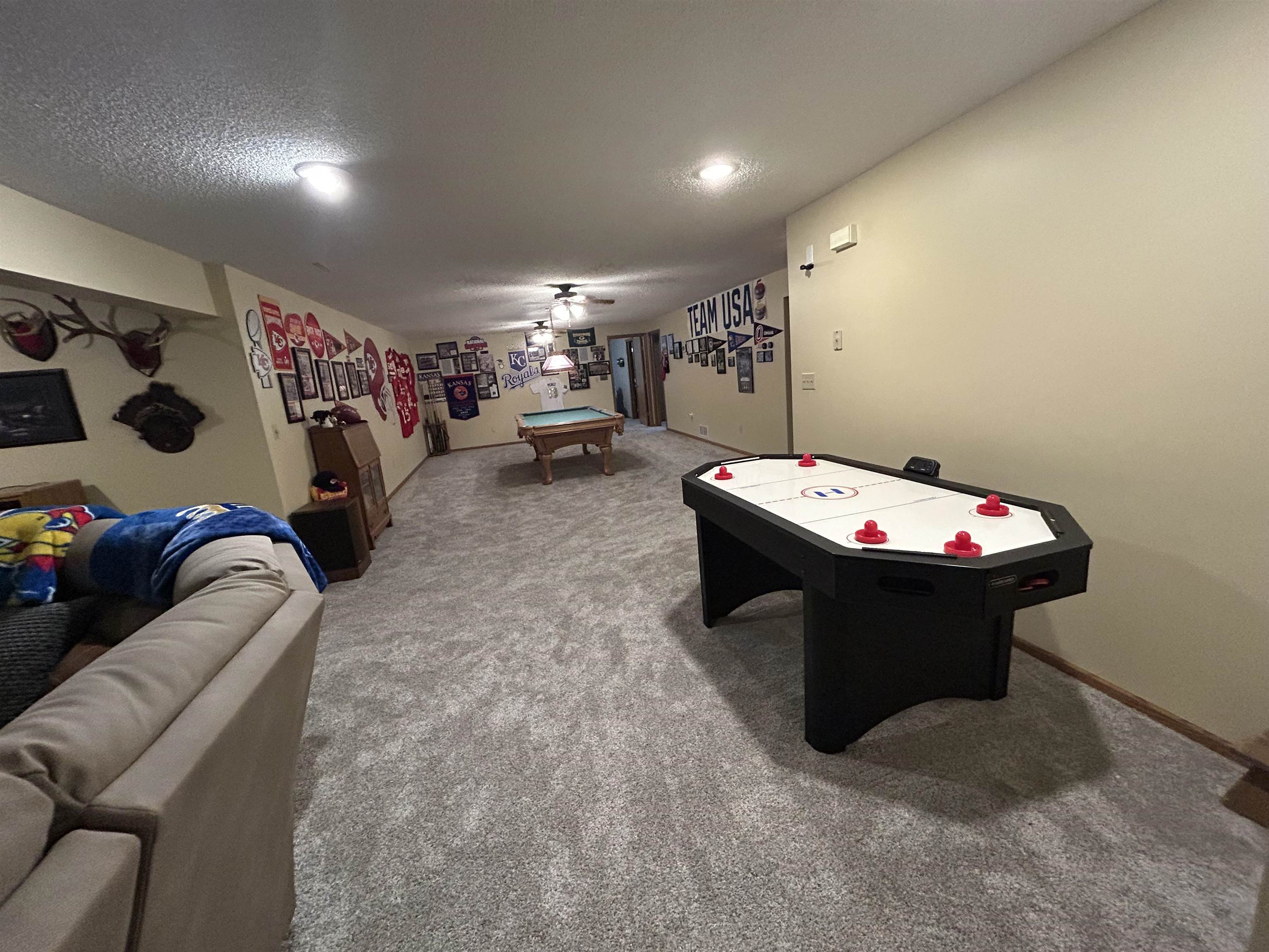 This incredible executive home is located across the street from the #5 green of Smoky Hill Country Club. The huge .6-acre lot is immaculately manicured with mature landscaping and a sprinkler system that is connected to a water well. An oversized 3-car garage, circle drive and partial street adjacent to the lot provide plenty of parking for family gatherings. The large inviting covered front porch offers quiet outdoor seating and unlimited holiday decorating possibilities. As you enter this spectacular home, a 2-story living room with abundant natural light and brick fireplace immediately grab your attention. The hardwood flooring leads you to a massive kitchen\breakfast room with custom cabinets, granite counters, large island, and stainless-steel appliances. The adjacent formal dining room has a bay window and ceiling design. The utility room measures a whopping 16'3" x 11'4" and has a laundry sink, plenty of storage, and a fold down ironing board. The 2nd and 3rd bedrooms are spacious and are directly across the hall from the most inviting main bath you can imagine with a whirlpool tub, double sinks, and a separate shower. The master bedroom is huge with a bay window, ceiling design, private en suite and walk in closet. The upstairs loft currently is configured as a dream office overlooking the 2-story living room with its own private 5 x 18 balcony, and a 6th non-conforming bedroom\storage\playroom. Downstairs is FUN TIME!! Two rec areas large enough for a pool table, air hockey, huge pit group and a brick fireplace offer hours of entertainment. The basement bedrooms are very large and there is also a large bathroom that has a built-in vanity. The quality construction of this brick\LP sided home include 50 yr impact resistant Malarkey shingles, energy efficient windows, 50-gallon gas water heater with wiring already installed if you want to convert to electric. All of these features contribute to incredible average Midwest Energy bills averaging only $219 for a home that is over 5200 sq ft!!! The backyard area features a huge 2-level composite deck with a covered area of about 300 sq ft. There is SO much room in the backyard to enjoy every day!! Contact John Holub @ 785-623-8004 or johnh@eliterealtyks.com to tour this home and make it yours!!!
