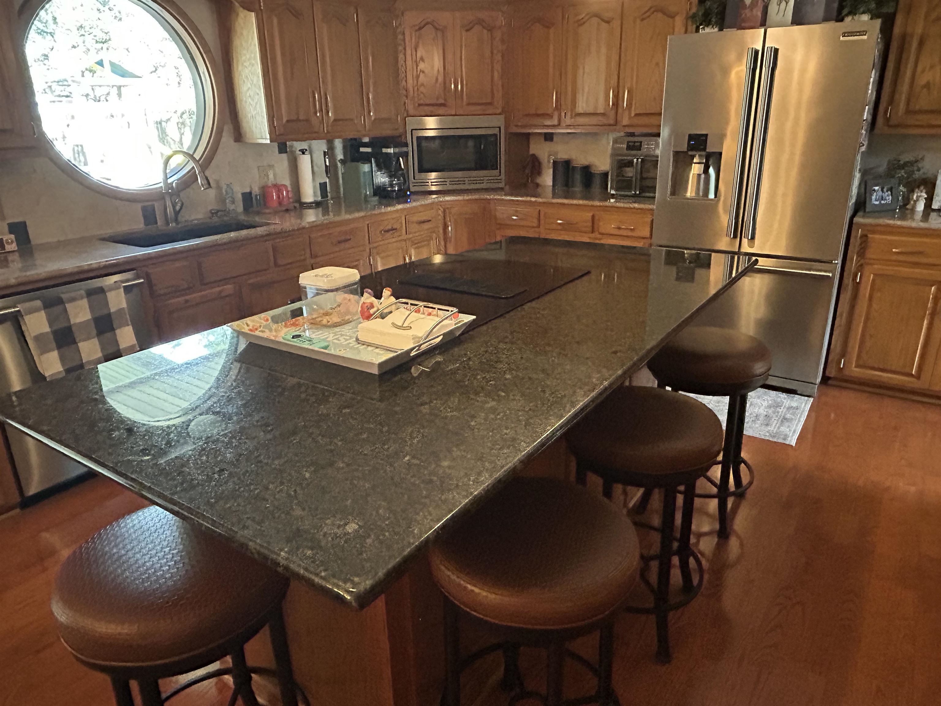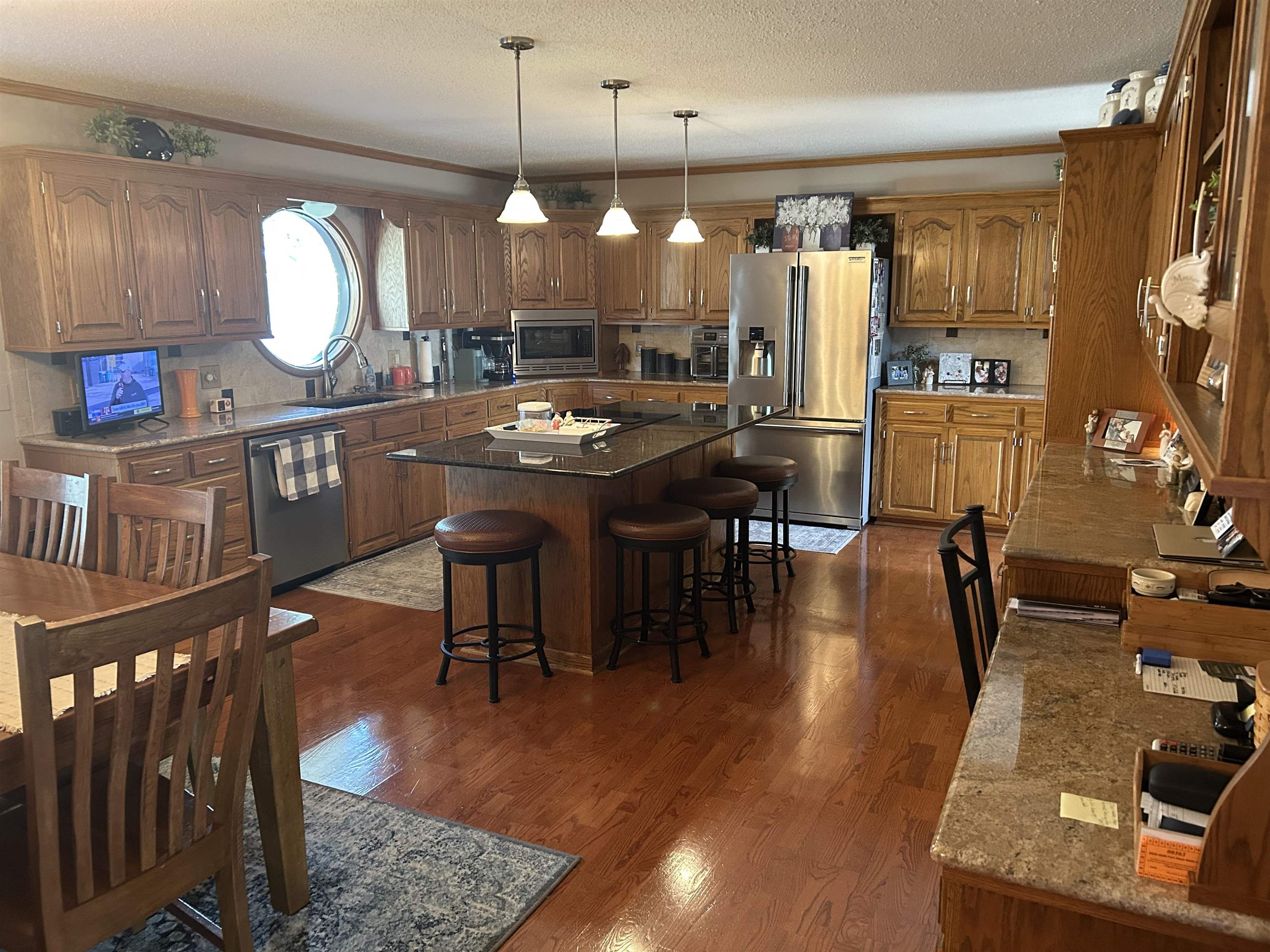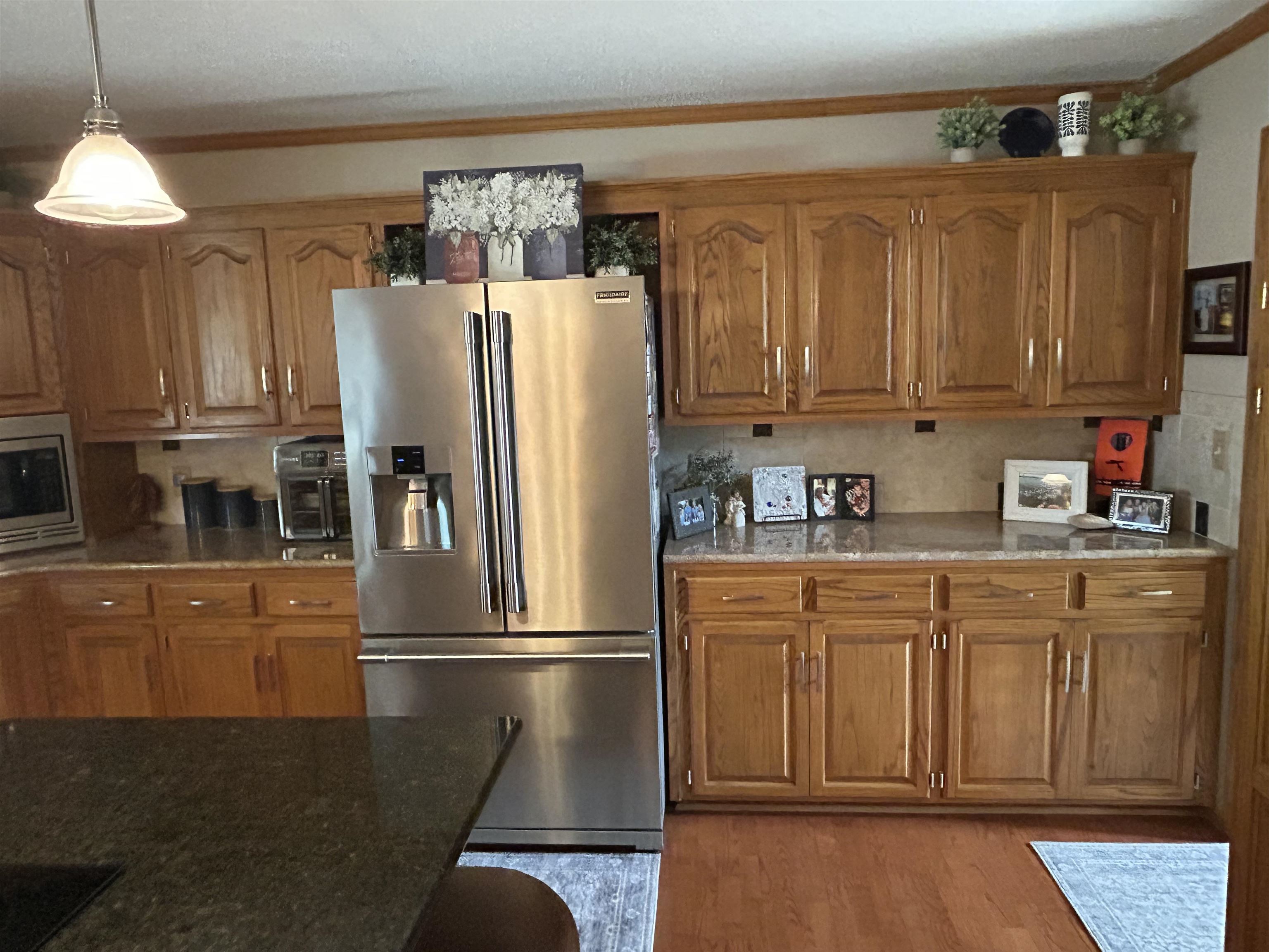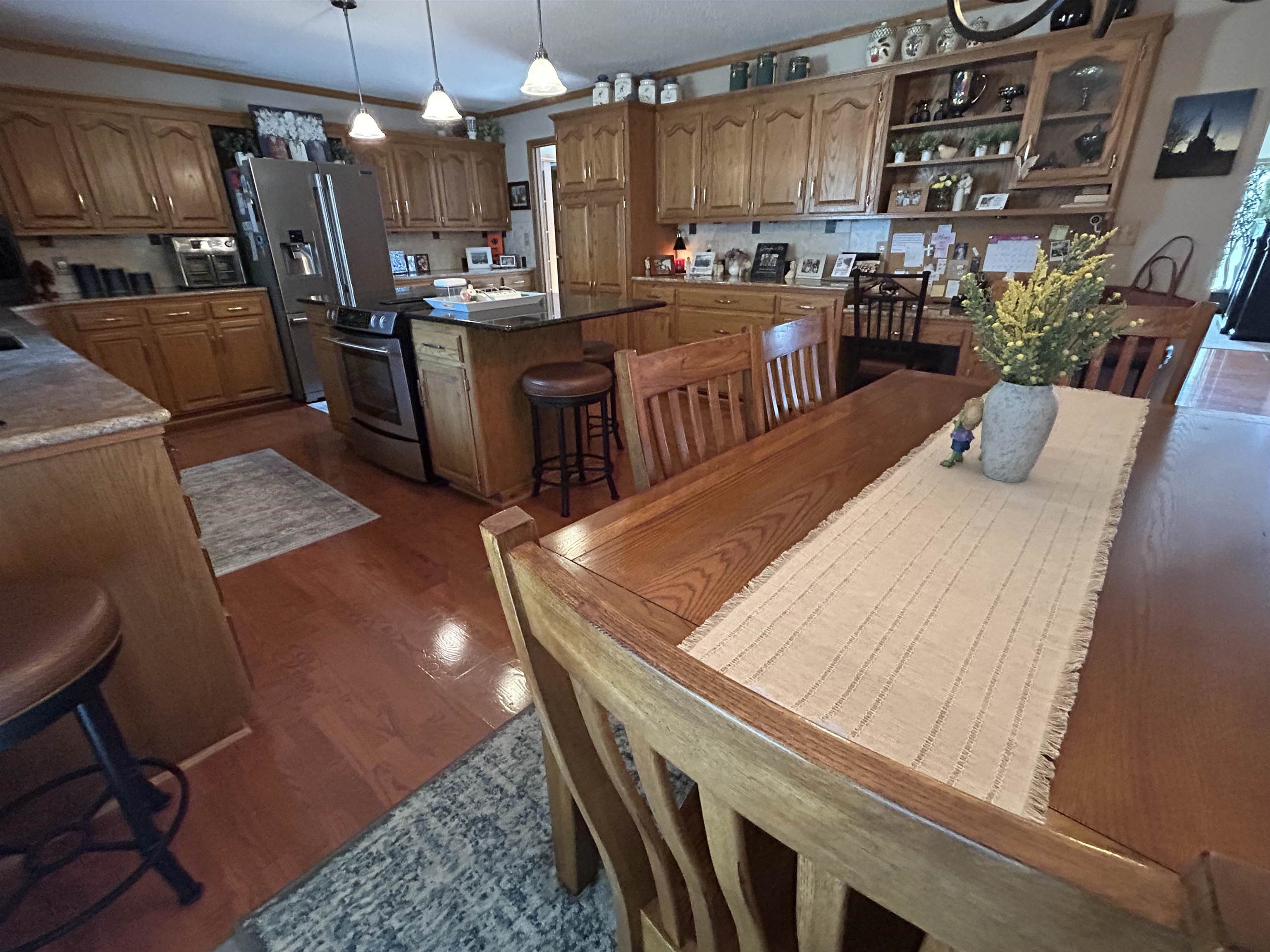 This incredible executive home is located across the street from the #5 green of Smoky Hill Country Club. The huge .6-acre lot is immaculately manicured with mature landscaping and a sprinkler system that is connected to a water well. An oversized 3-car garage, circle drive and partial street adjacent to the lot provide plenty of parking for family gatherings. The large inviting covered front porch offers quiet outdoor seating and unlimited holiday decorating possibilities. As you enter this spectacular home, a 2-story living room with abundant natural light and brick fireplace immediately grab your attention. The hardwood flooring leads you to a massive kitchen\breakfast room with custom cabinets, granite counters, large island, and stainless-steel appliances. The adjacent formal dining room has a bay window and ceiling design. The utility room measures a whopping 16'3" x 11'4" and has a laundry sink, plenty of storage, and a fold down ironing board. The 2nd and 3rd bedrooms are spacious and are directly across the hall from the most inviting main bath you can imagine with a whirlpool tub, double sinks, and a separate shower. The master bedroom is huge with a bay window, ceiling design, private en suite and walk in closet. The upstairs loft currently is configured as a dream office overlooking the 2-story living room with its own private 5 x 18 balcony, and a 6th non-conforming bedroom\storage\playroom. Downstairs is FUN TIME!! Two rec areas large enough for a pool table, air hockey, huge pit group and a brick fireplace offer hours of entertainment. The basement bedrooms are very large and there is also a large bathroom that has a built-in vanity. The quality construction of this brick\LP sided home include 50 yr impact resistant Malarkey shingles, energy efficient windows, 50-gallon gas water heater with wiring already installed if you want to convert to electric. All of these features contribute to incredible average Midwest Energy bills averaging only $219 for a home that is over 5200 sq ft!!! The backyard area features a huge 2-level composite deck with a covered area of about 300 sq ft. There is SO much room in the backyard to enjoy every day!! Contact John Holub @ 785-623-8004 or johnh@eliterealtyks.com to tour this home and make it yours!!!